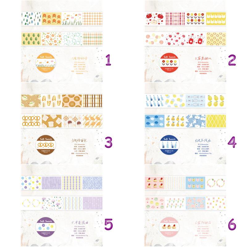 手帳デコ/文具/日記デコ/文具沼/紙もの/海外文具/コラージュ/ジャーナル/ラッピング/パステル/淡色/海外マステ/マステ/デコ素材/海外風/シール/ステッカー/ロールステッカー/パステル/ラメ/スイーツ/パン/チェック柄/パターン柄/マスキングテープ