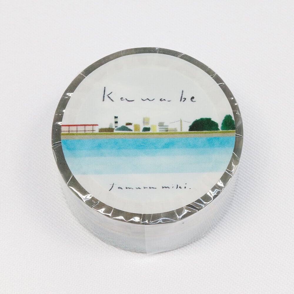 やわらかな色味で描き出された川辺の風景が素敵なデザイン。