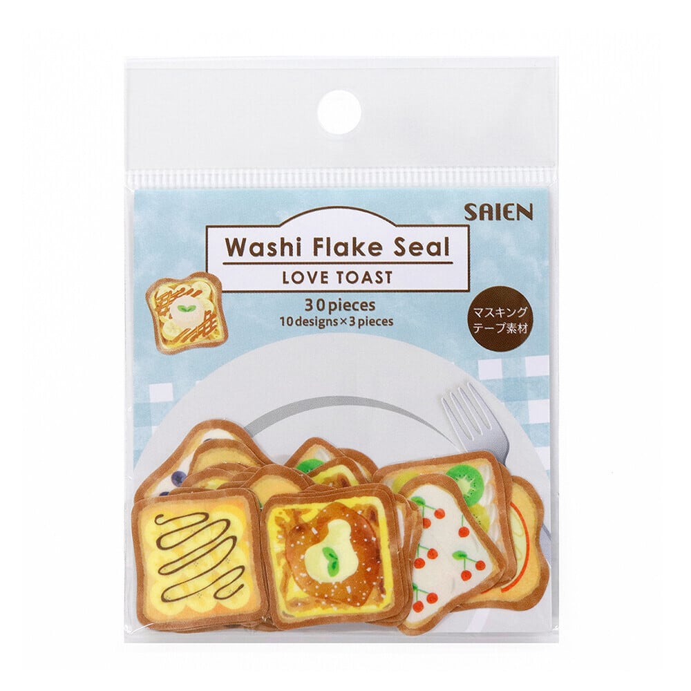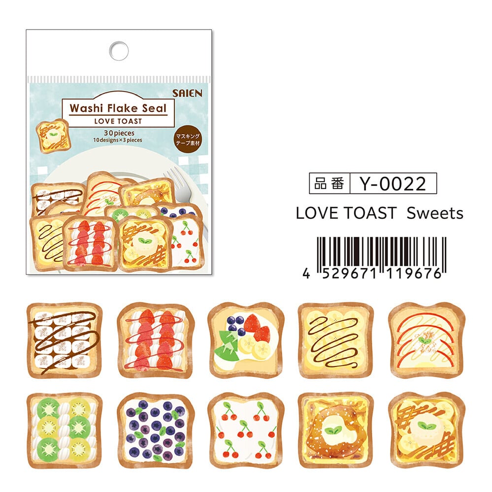 いろいろなトッピングのスイーツトーストがデザインされた和紙素材のフレークシール。