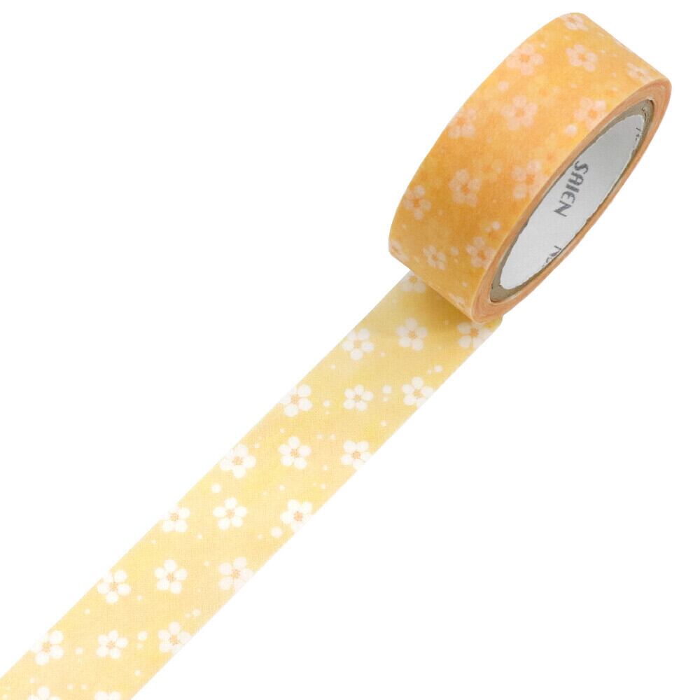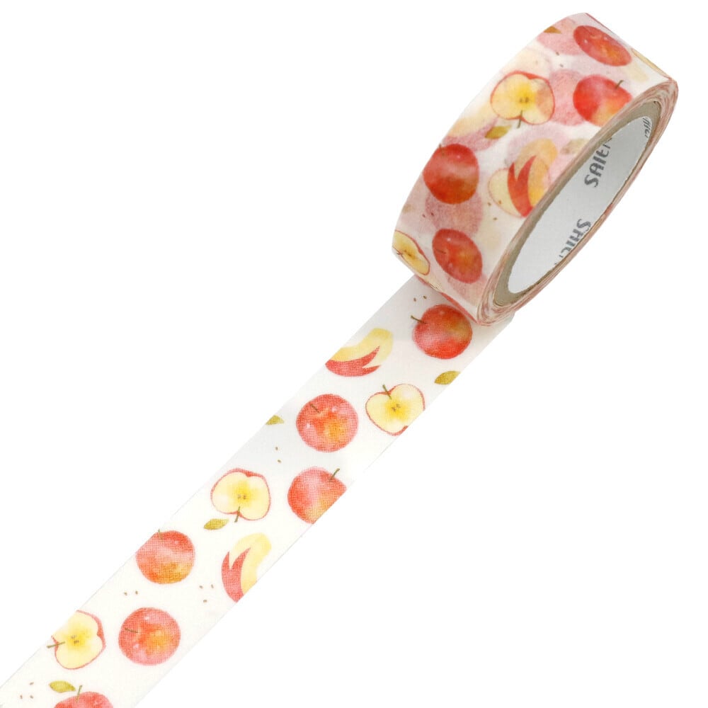 りんごが散りばめられたテープ・リンゴの皮をイメージした美しいグラデーションのテープ・リンゴの果肉のような淡い色味の花柄デザインのテープがセットになっています。