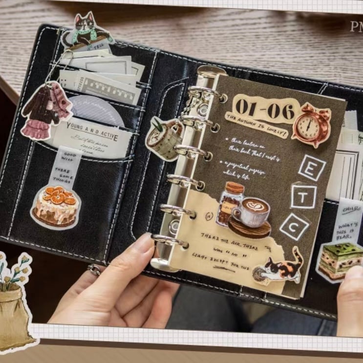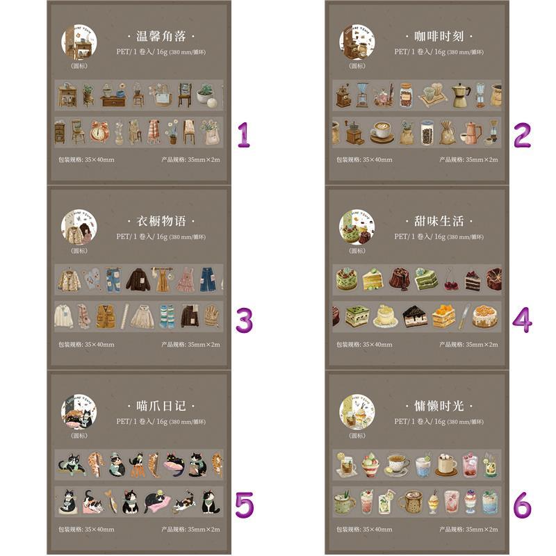 手帳/文具/日記/デコレーション/紙もの/かわいい/海外文具/コラージュ/ジャーナル/ラッピング/パステル/淡色/海外マステ/デコ素材/海外風/シール/ステッカー/アンティーク/ロールステッカー/アニマル/猫/カフェ/コーヒー/スイーツ/ケーキ/冬/インテリア/ファッション/暮らし/PETシール/クリアステッカー