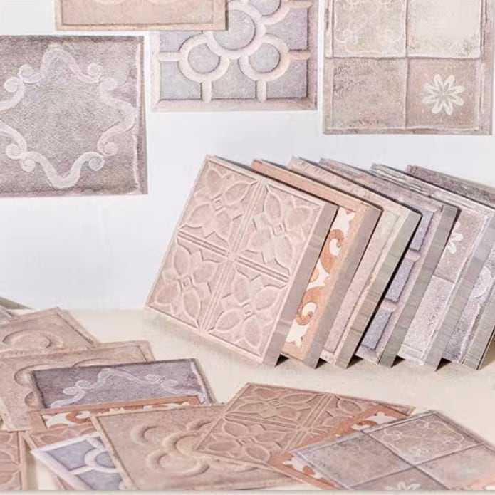 手帳デコ/文具/日記デコ/文具沼/紙もの/かわいい/海外文具/コラージュ/ジャーナル/ラッピング/パステル/淡色/デコ素材/海外風/アンティーク/タイル/メモ/ペーパー/スクエア