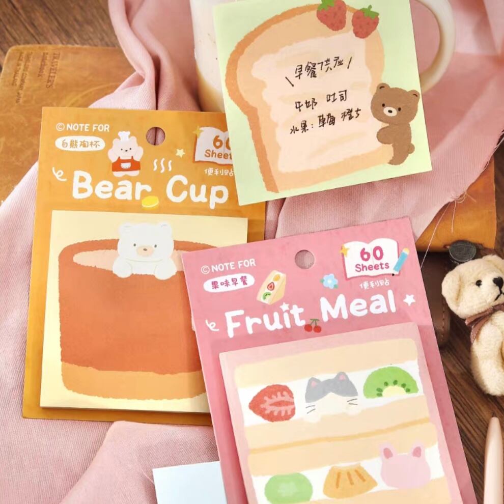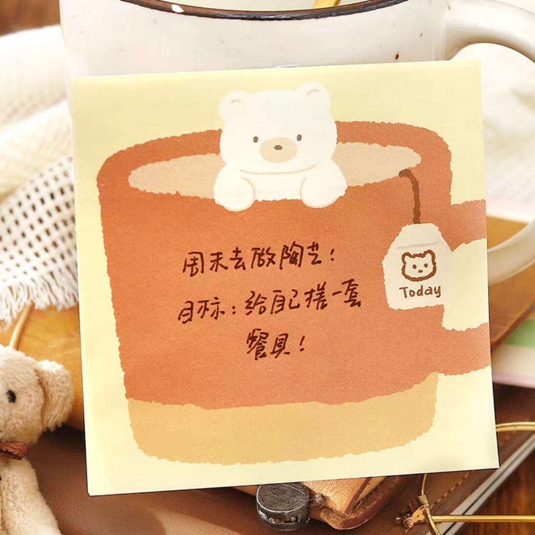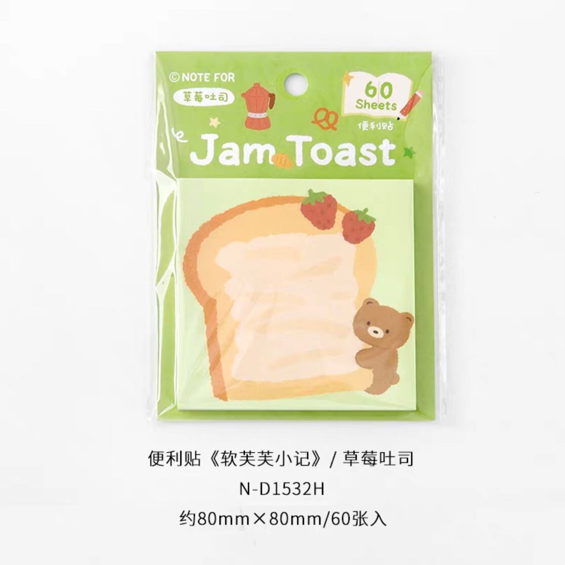 マグカップやトーストなど、日常使いしやすいモチーフのスクエアメモ。