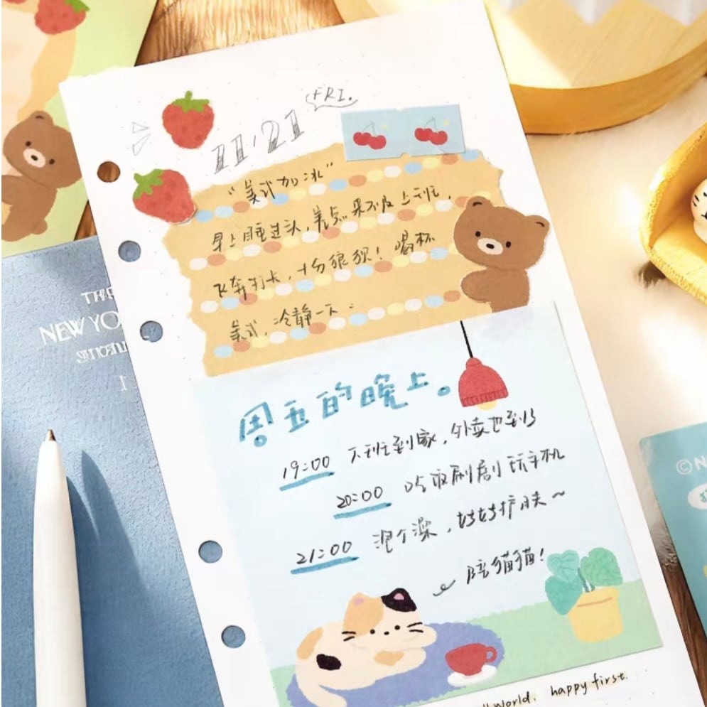 手帳デコ/文具/日記デコ/文具沼/紙もの/かわいい/海外文具/コラージュ/ジャーナル/ラッピング/パステル/淡色/デコ素材/メモ/スクエア/ペーパー/アニマル/くま/ねこ/パン/トースト/フルーツサンド/カフェ