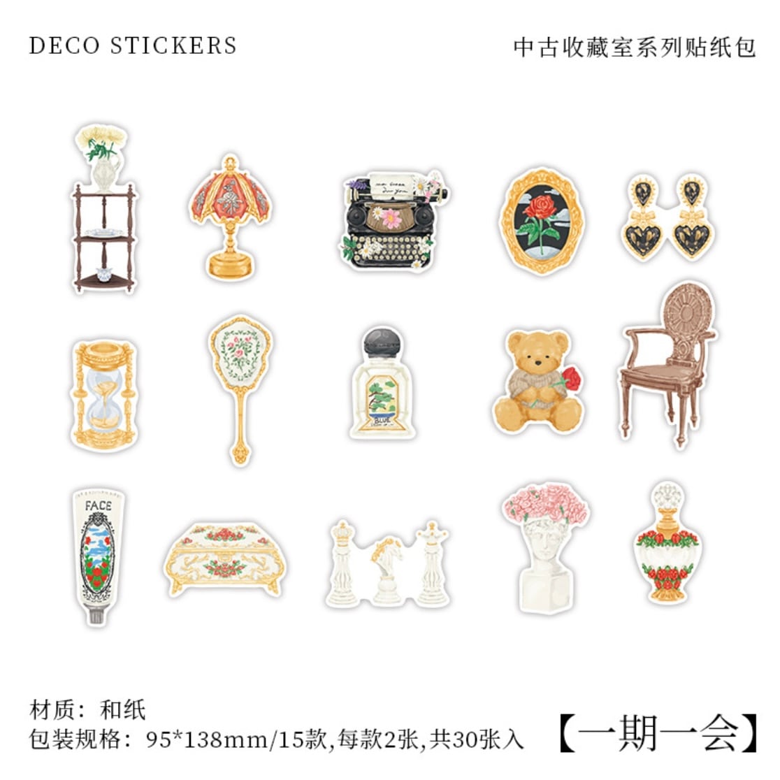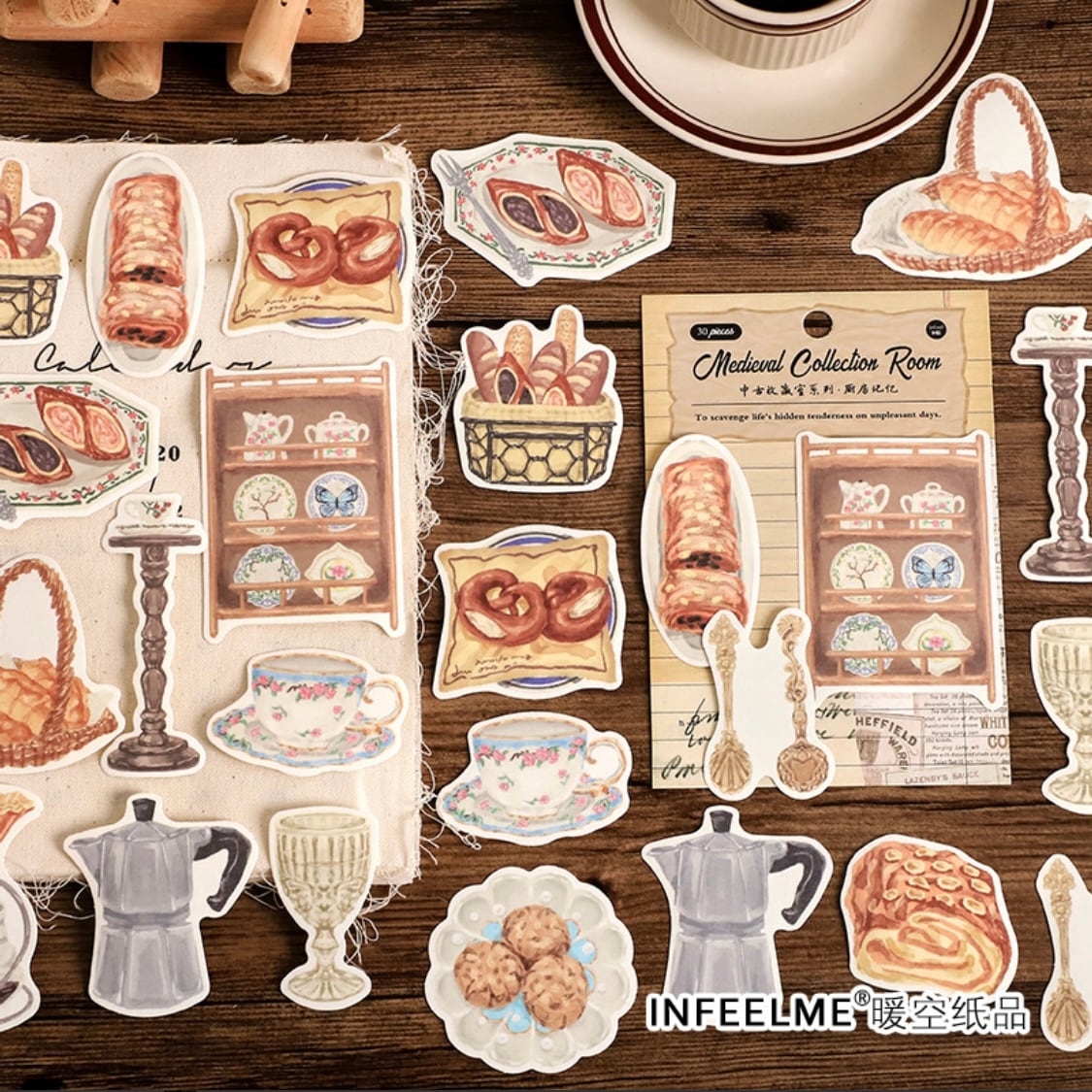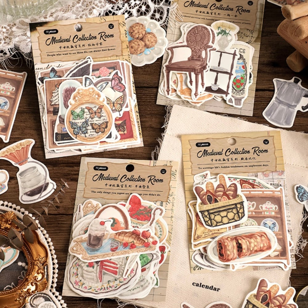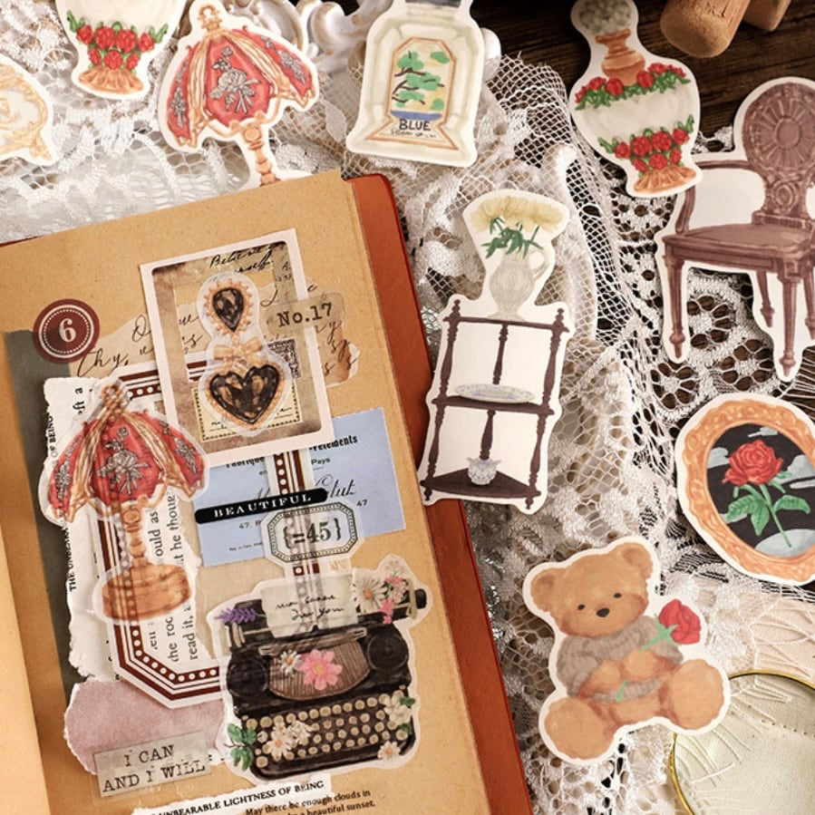 インテリアやスイーツモチーフの、アンティークな雰囲気のフレークシール。