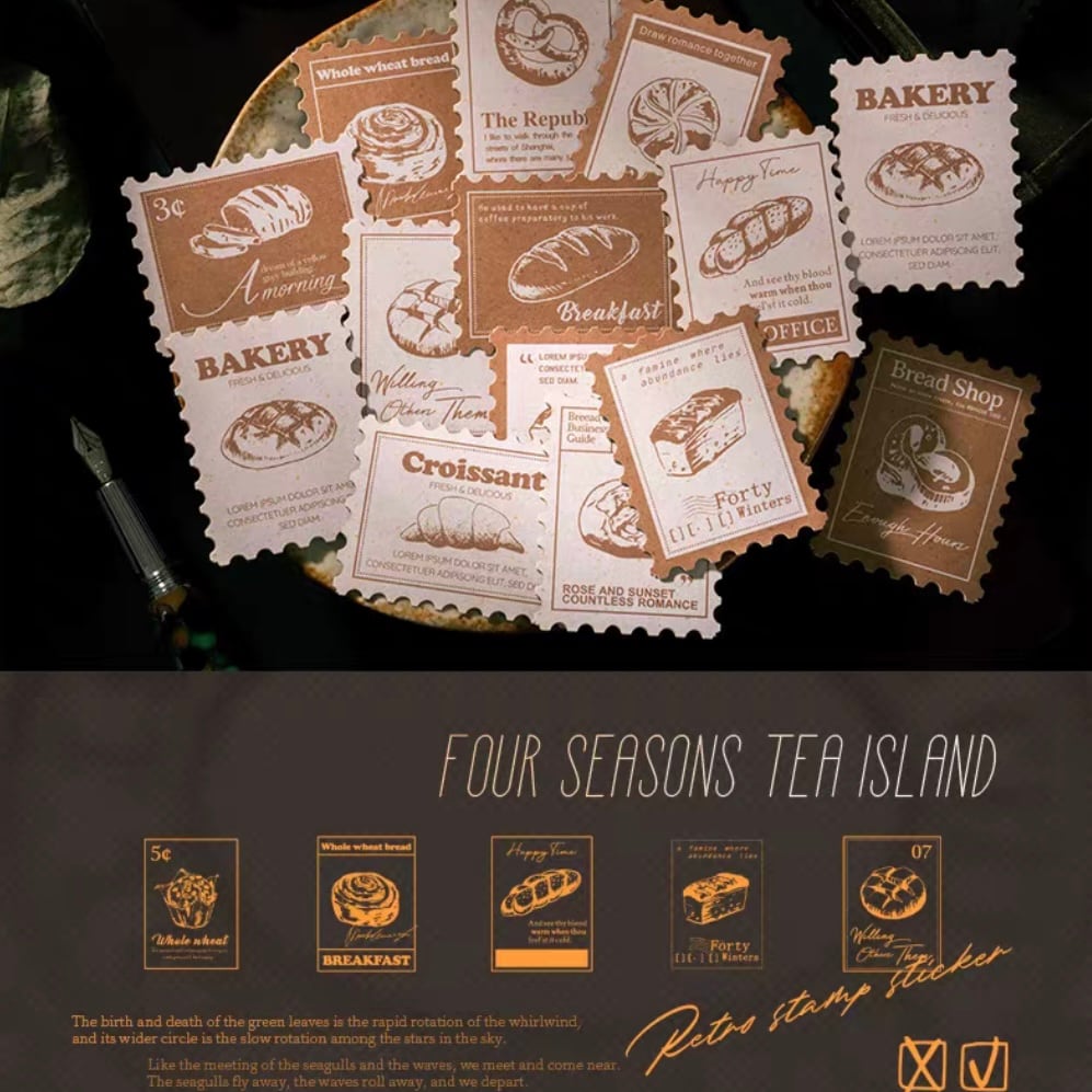 手帳デコ/文具/日記デコ/文具沼/紙もの/かわいい/海外文具/コラージュ/ジャーナル/ラッピング/パステル/淡色/デコ素材/海外シール/アンティーク/海外風/レトロ/フレークシール/シール/ステッカー/カフェ/パン/スイーツ/切手/スタンプ/レター/ラッピング