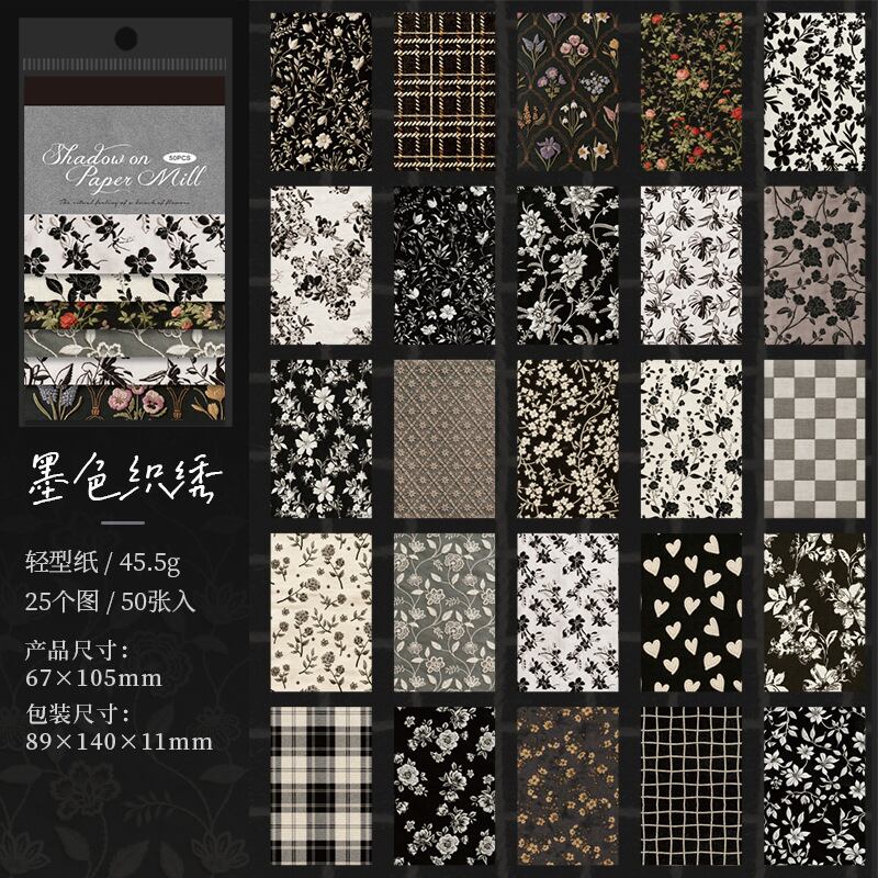 手帳デコやコラージュに使いやすいサイズの、デザイン豊富なパターンペーパー。