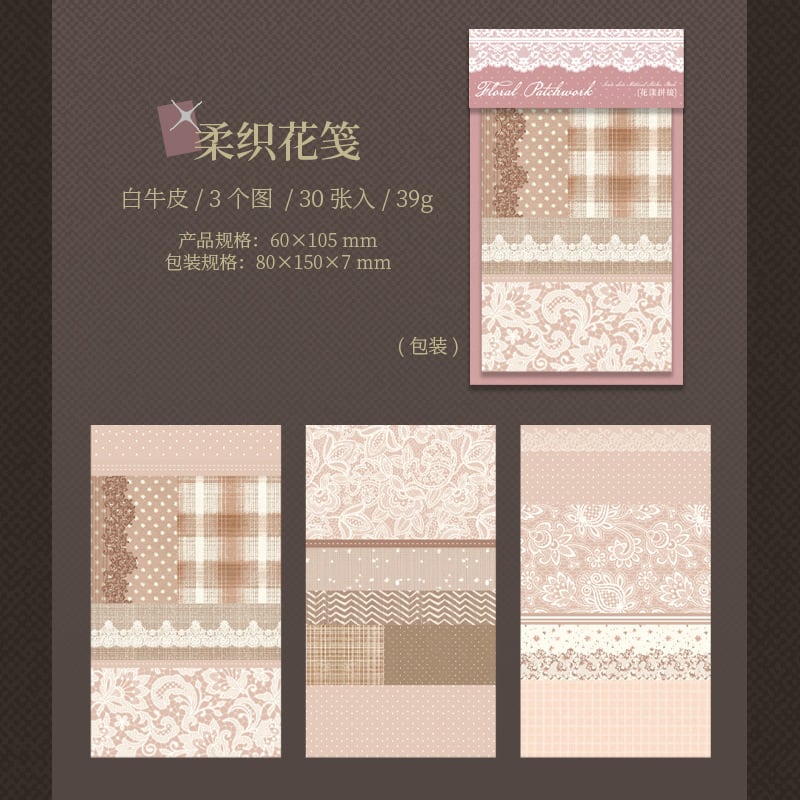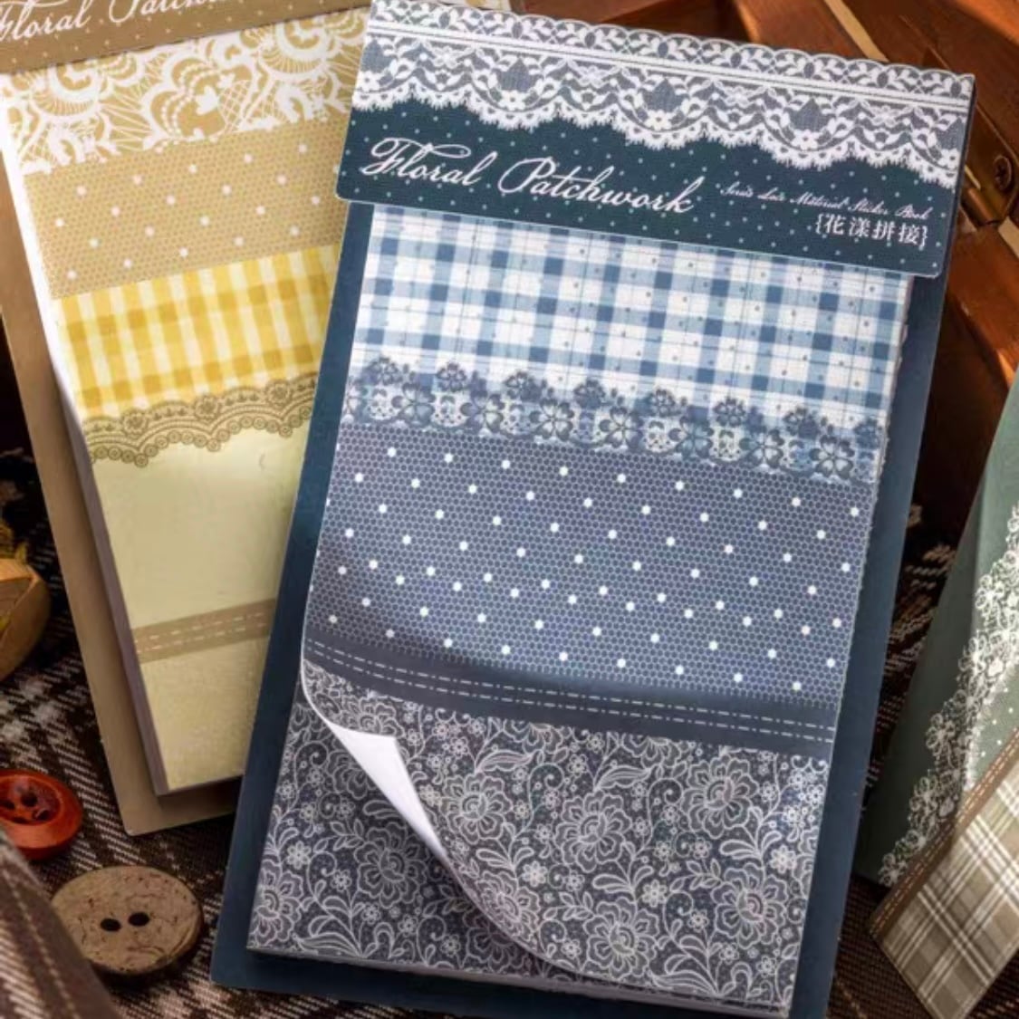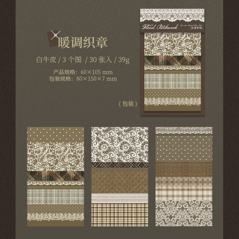 アンティークなレース×ファブリックのパッチワークデザインのステッカーブック。