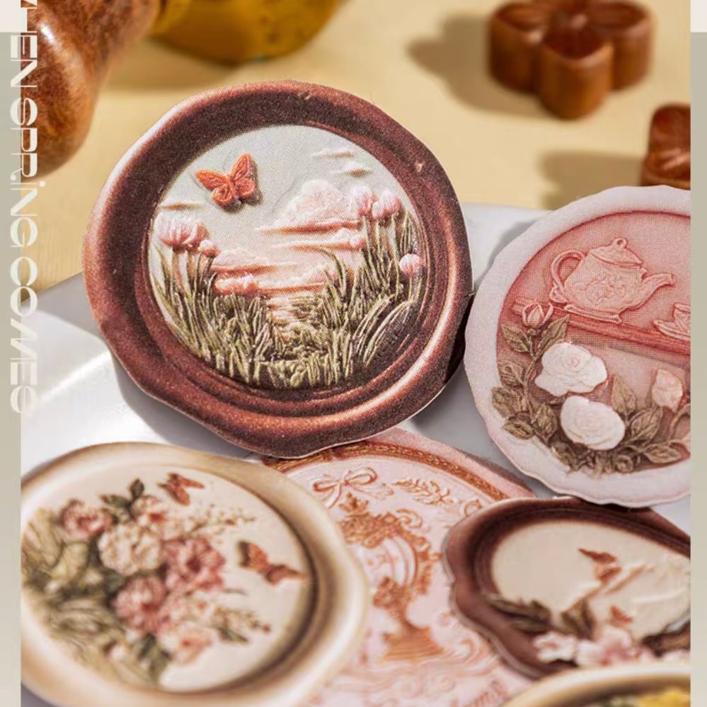 手帳デコ/文具/日記デコ/文具沼/紙もの/かわいい/海外文具/コラージュ/ジャーナル/ラッピング/パステル/淡色/デコ素材/海外シール/アンティーク/立体シール/海外風/風景/ガーリー/フレークシール/シール/ステッカー/シーリングスタンプ/凸版/ラッピング
