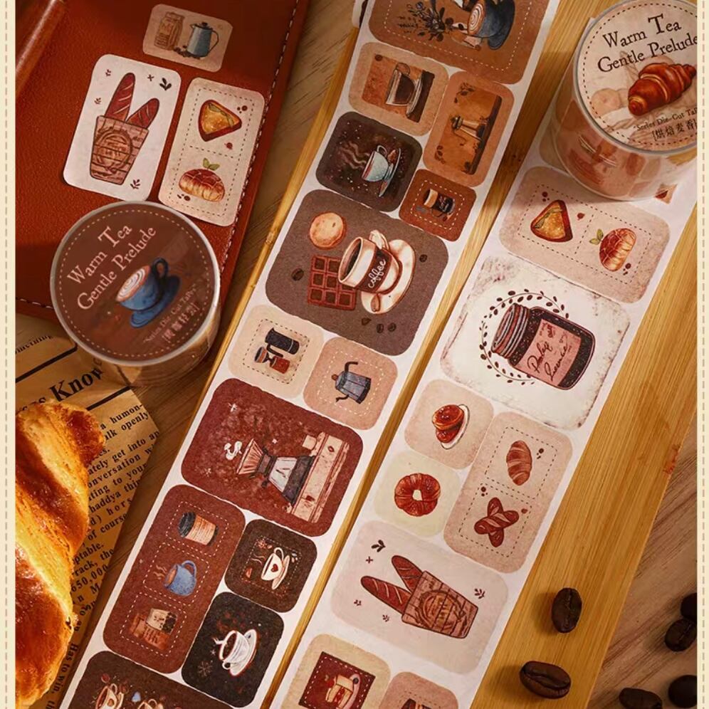 手帳デコ/文具/日記デコ/文具沼/紙もの/かわいい/海外文具/コラージュ/ジャーナル/ラッピング/パステル/淡色/デコ素材/海外シール/アンティーク/ロールステッカー/スイーツ/パン/カフェ/コーヒー/ロールシール/シール/ステッカー