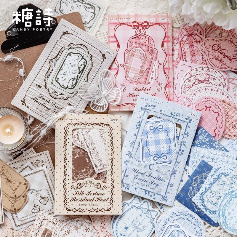 手帳デコ/文具/日記デコ/文具沼/紙もの/かわいい/海外文具/コラージュ/ジャーナル/ラッピング/パステル/淡色/デコ素材/海外シール/アンティーク/ガーリー/くま/ピンク/モノクロ/フレークシール/フレーク付箋/メモ/リボン/フレーム/ラッピング/シール/ステッカー