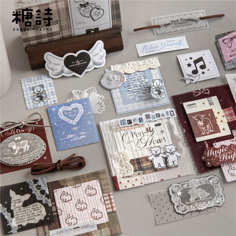 手帳デコ/文具/日記デコ/文具沼/紙もの/かわいい/海外文具/コラージュ/ジャーナル/ラッピング/パステル/淡色/デコ素材/海外シール/アンティーク/ガーリー/くま/ピンク/モノクロ/フレークシール/リボン/ラッピング/シール/ステッカー