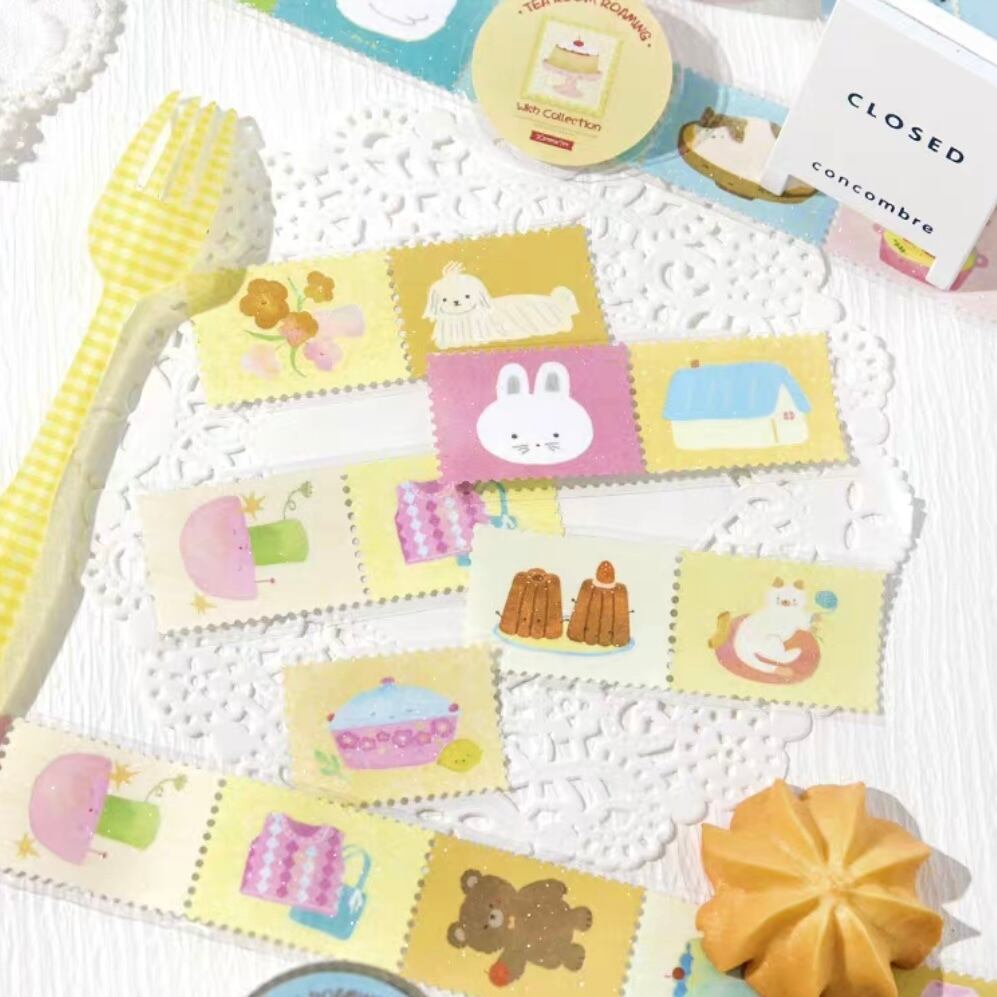 手帳デコ/文具/日記デコ/文具沼/紙もの/かわいい/海外文具/コラージュ/ジャーナル/ラッピング/パステル/淡色/デコ素材/海外シール/シール/ステッカー/ロールステッカー/アニマル/ラメ/暮らし/韓国/カフェ/コーヒー