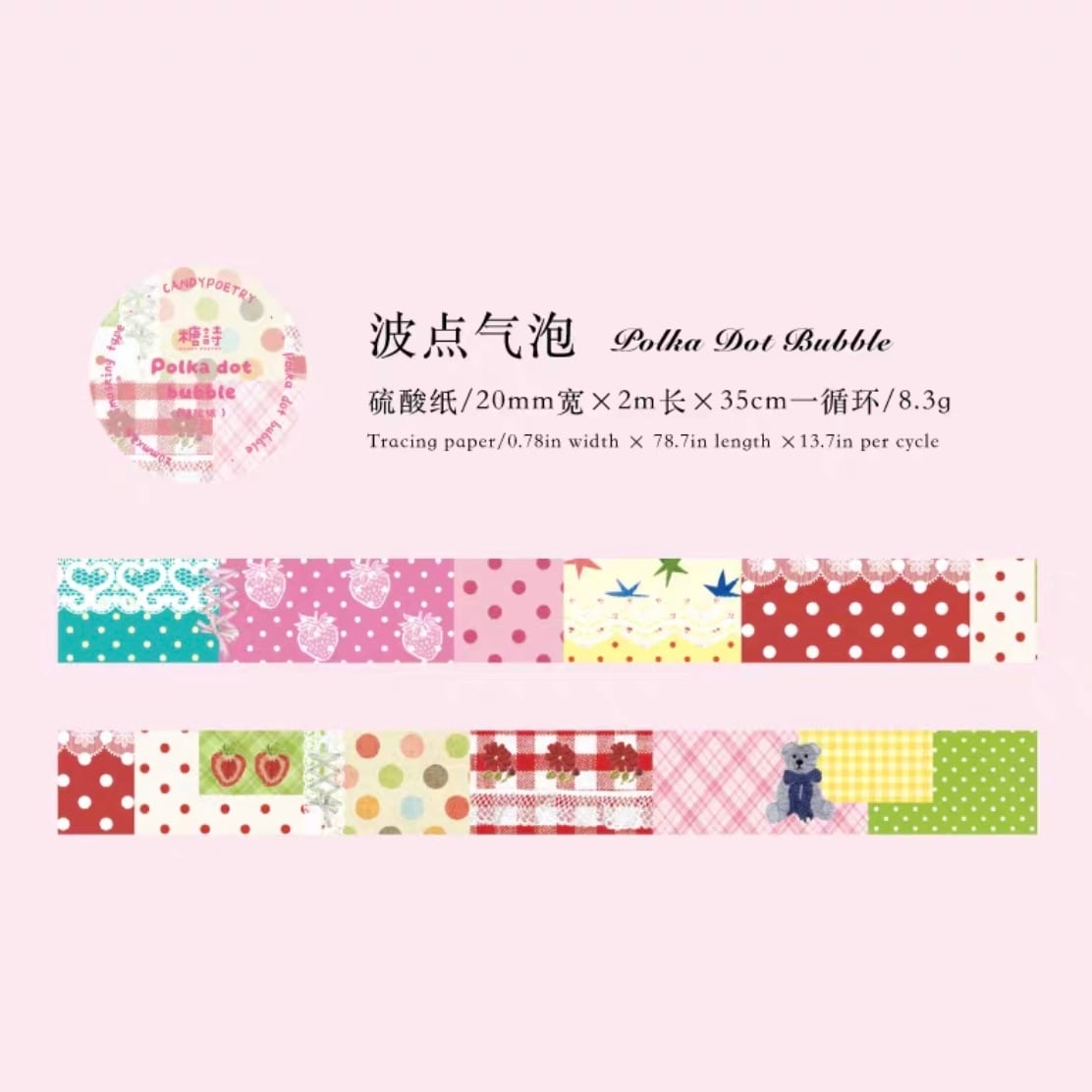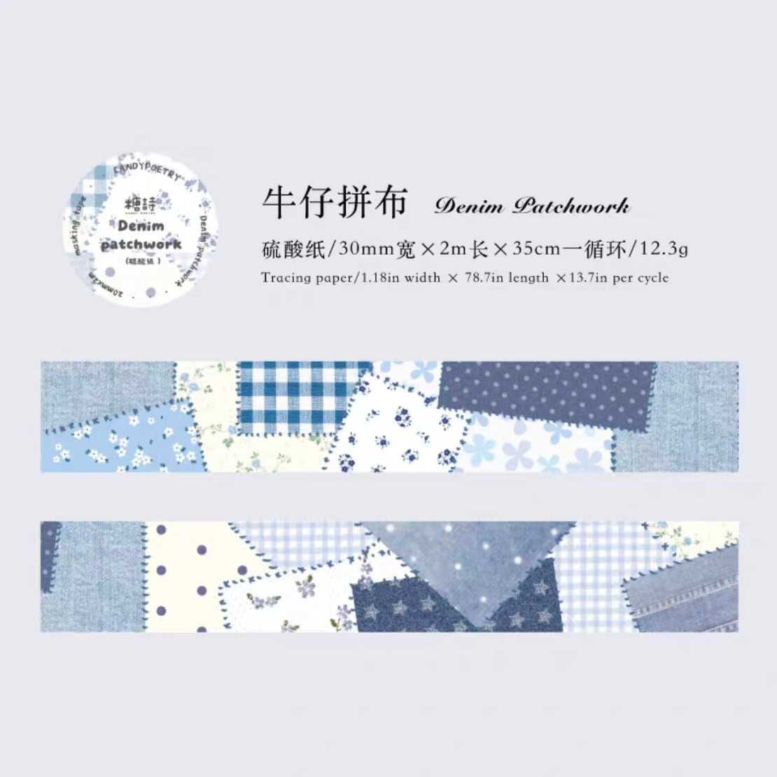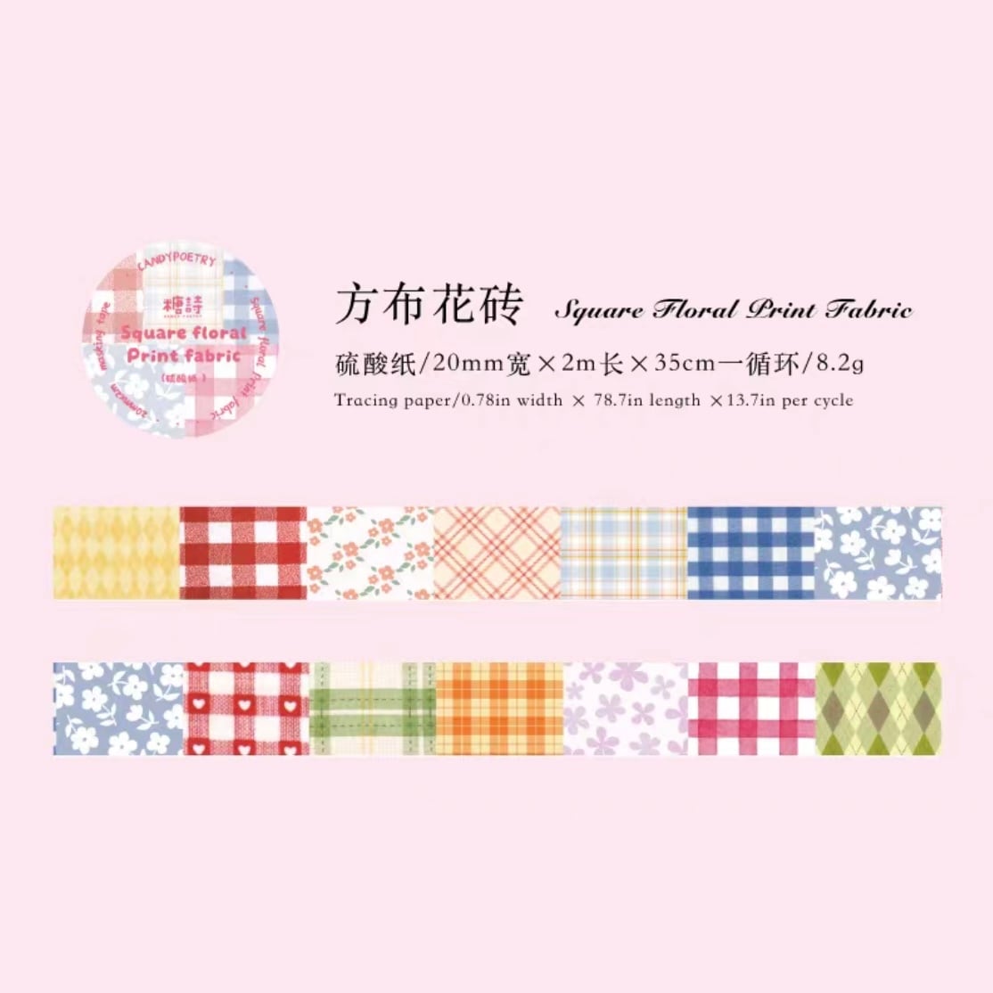 フラワーやチェックモチーフのパッチワーク柄マスキングテープ。