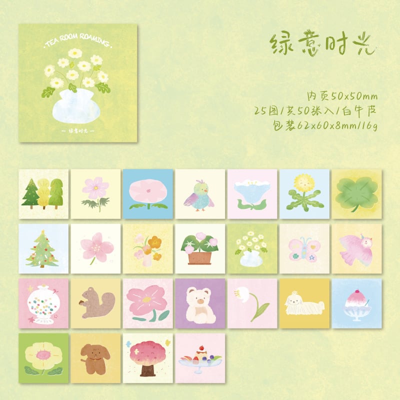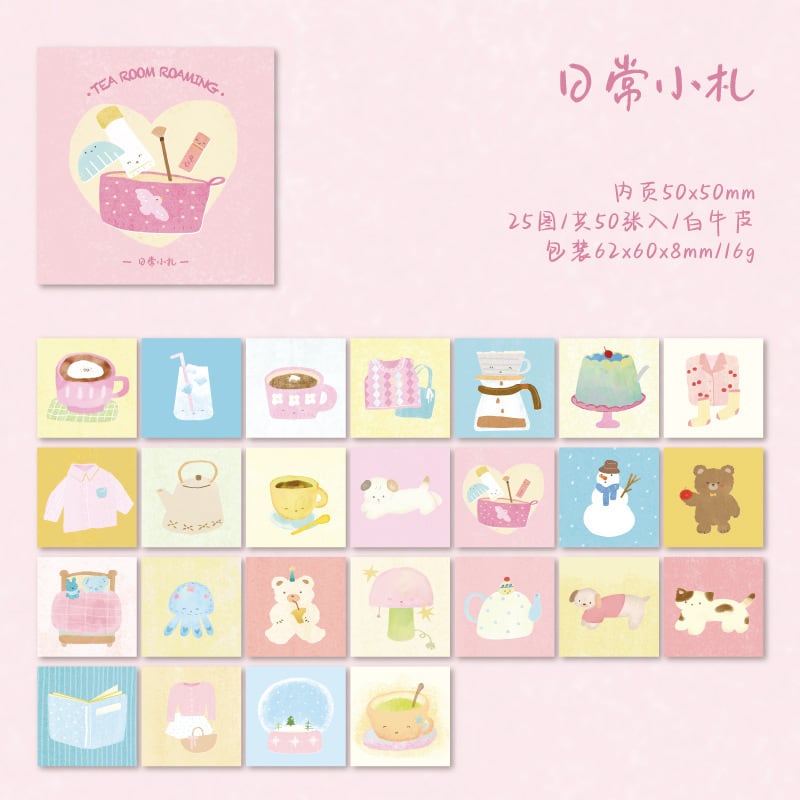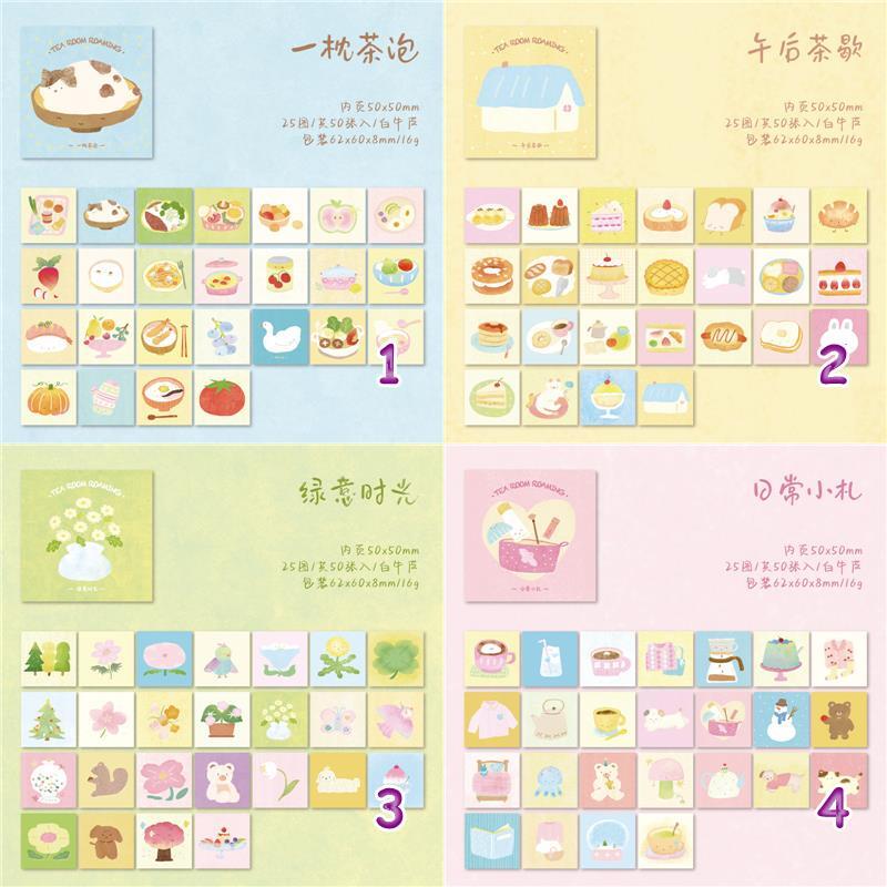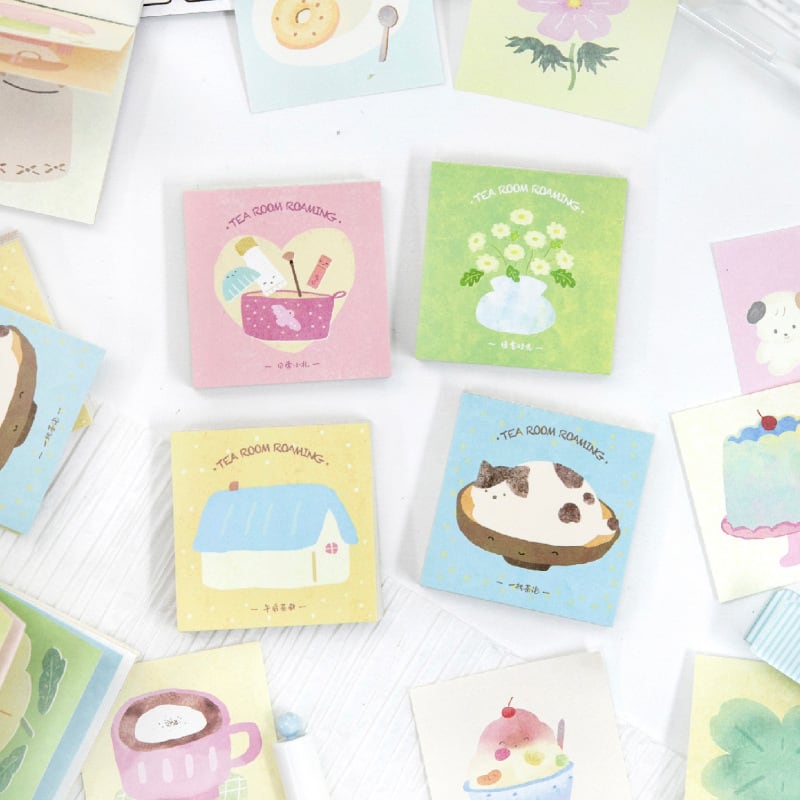 デスクに貼るだけでも可愛い、優しいカラーリングとシンプルなイラストのスクエアメモです。