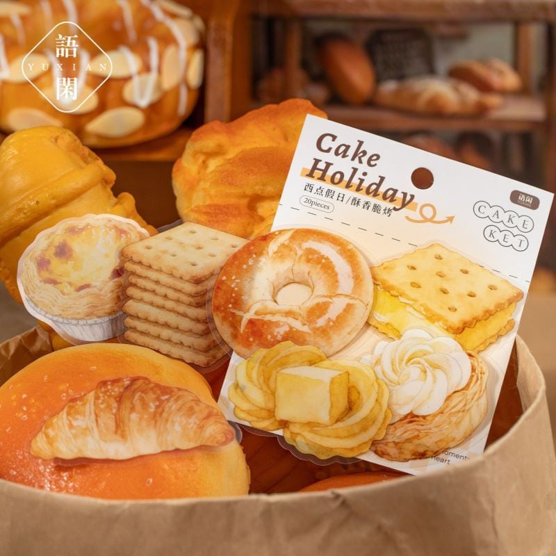 手帳デコ/文具/日記デコ/文具沼/紙もの/かわいい/海外文具/コラージュ/ジャーナル/ラッピング/パステル/淡色/デコ素材/フレークシール/ステッカー/シール/パン/スイーツ/クッキー/ケーキ/ドリンク/カフェ/PETシール/クリアシール