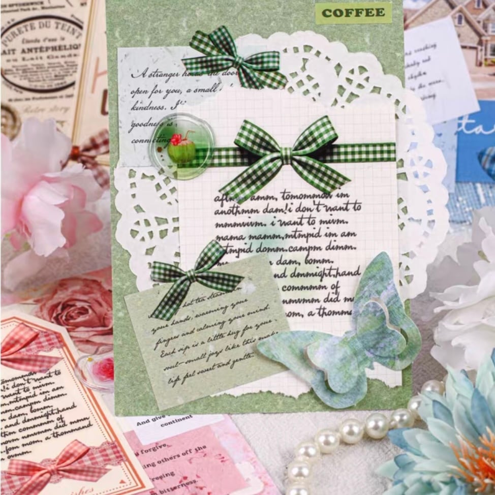 手帳デコ/文具/日記デコ/文具沼/紙もの/かわいい/海外文具/コラージュ/ジャーナル/ラッピング/パステル/淡色/デコ素材/チェック/クリアテープ/リボン/PETテープ