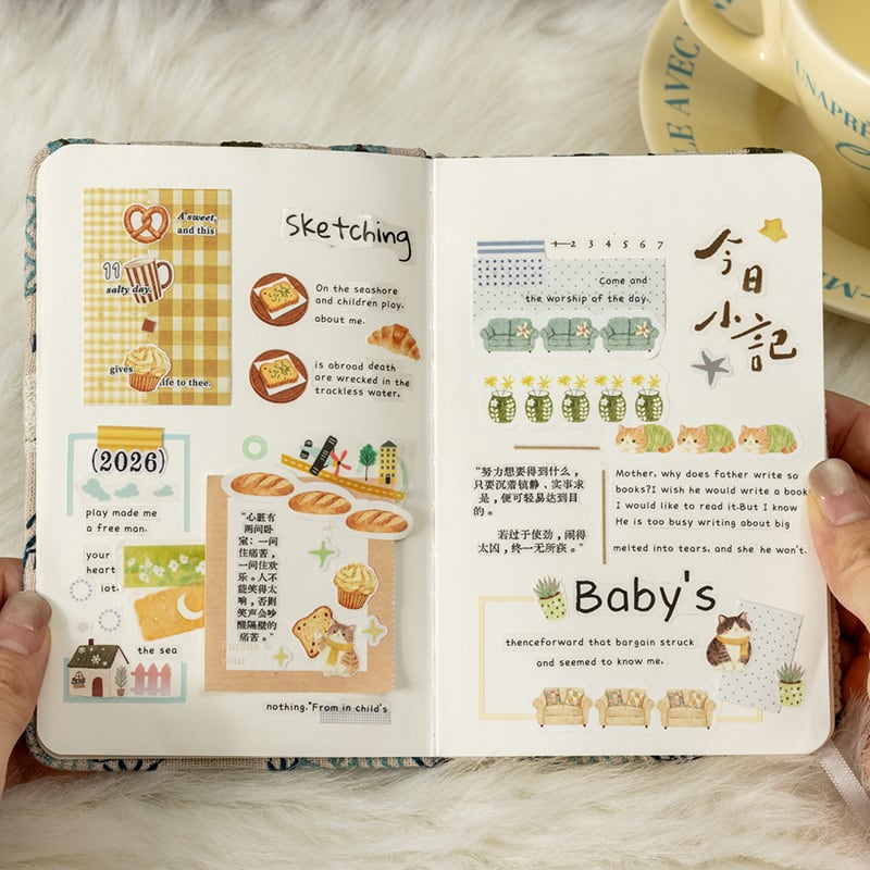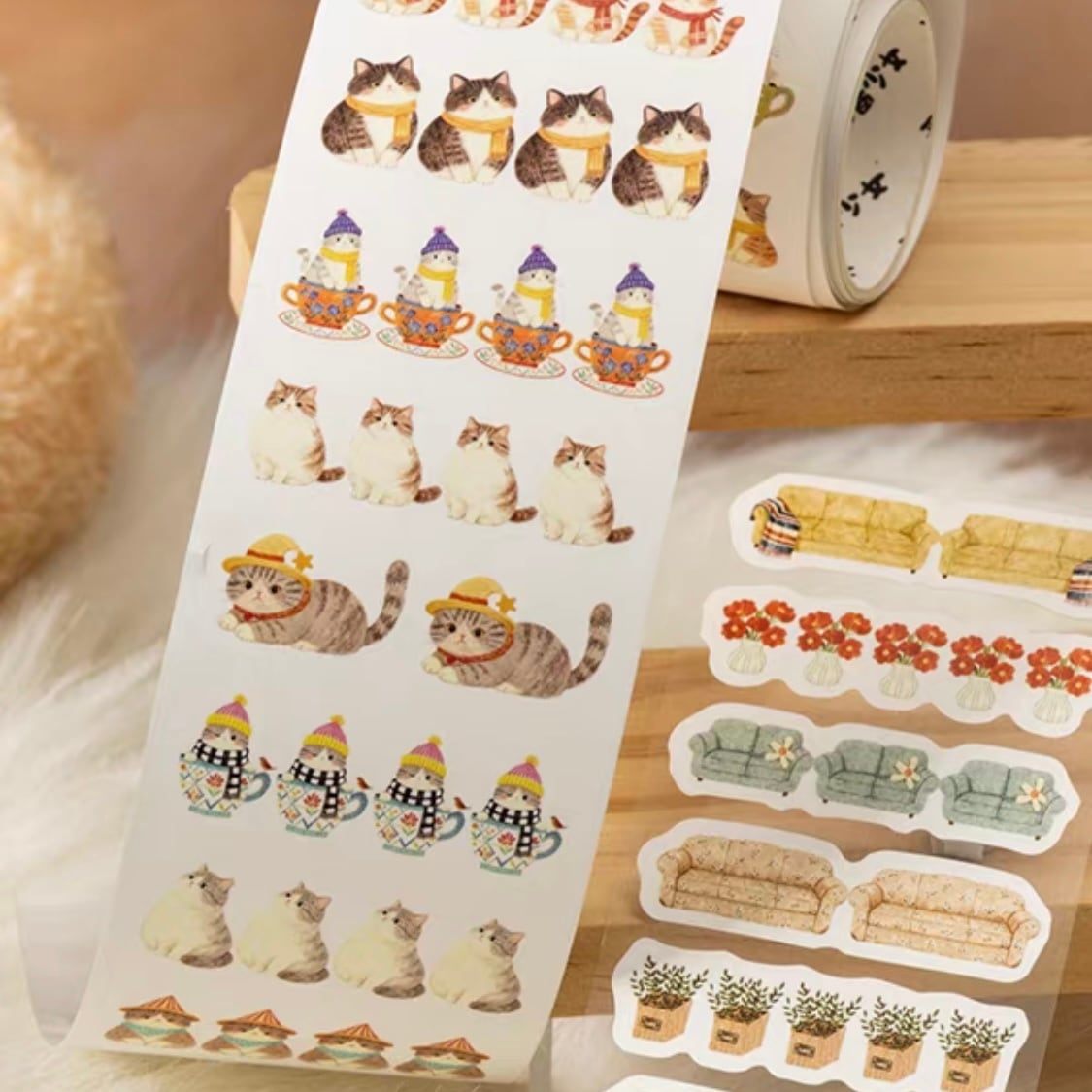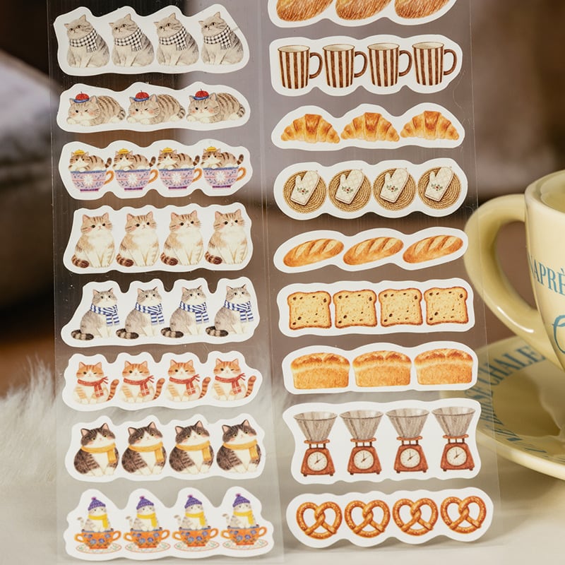 手帳デコ/文具/日記デコ/文具沼/紙もの/かわいい/海外文具/コラージュ/ジャーナル/ラッピング/パステル/淡色/デコ素材/海外シール/シール/ステッカー/ロールステッカー/カフェ/スイーツ/ケーキ/韓国/カフェ/パン/コーヒー/アニマル/ねこ/インテリア/ソファ/暮らし/ライン/北欧/家
