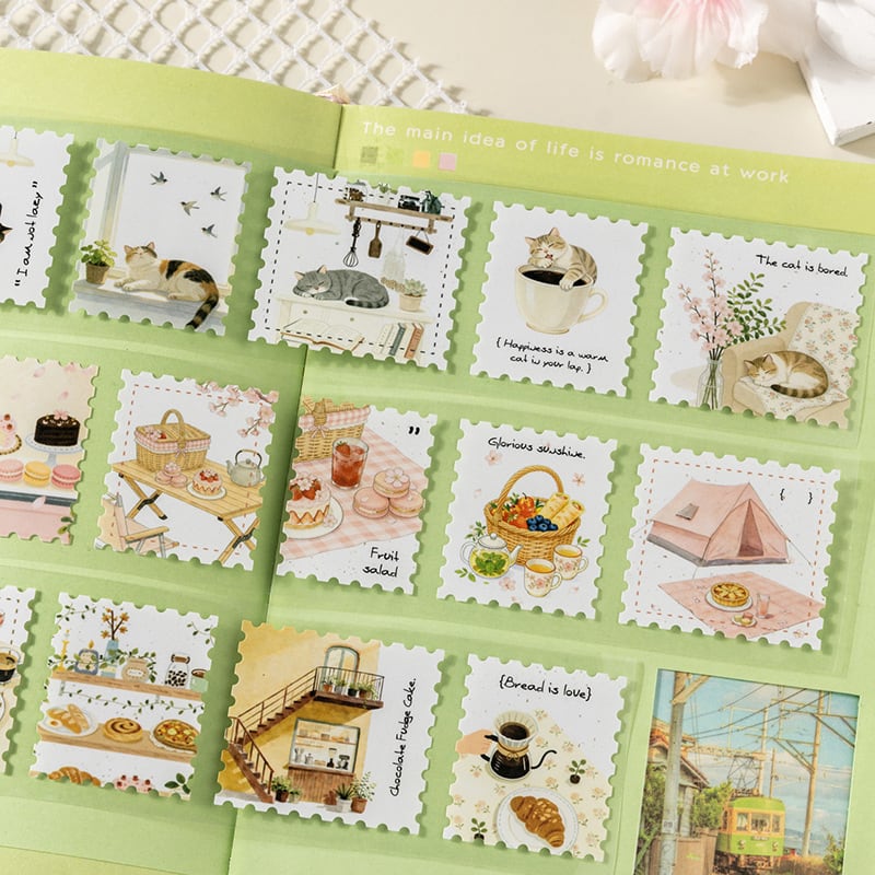 手帳デコ/文具/日記デコ/文具沼/紙もの/かわいい/海外文具/コラージュ/ジャーナル/ラッピング/パステル/淡色/海外シール/デコ素材/海外風/シール/ステッカー/暮らし/インテリア/アンティーク/楽器/春/風景/パン/ベーカリー/スイーツ/猫/北欧/切手