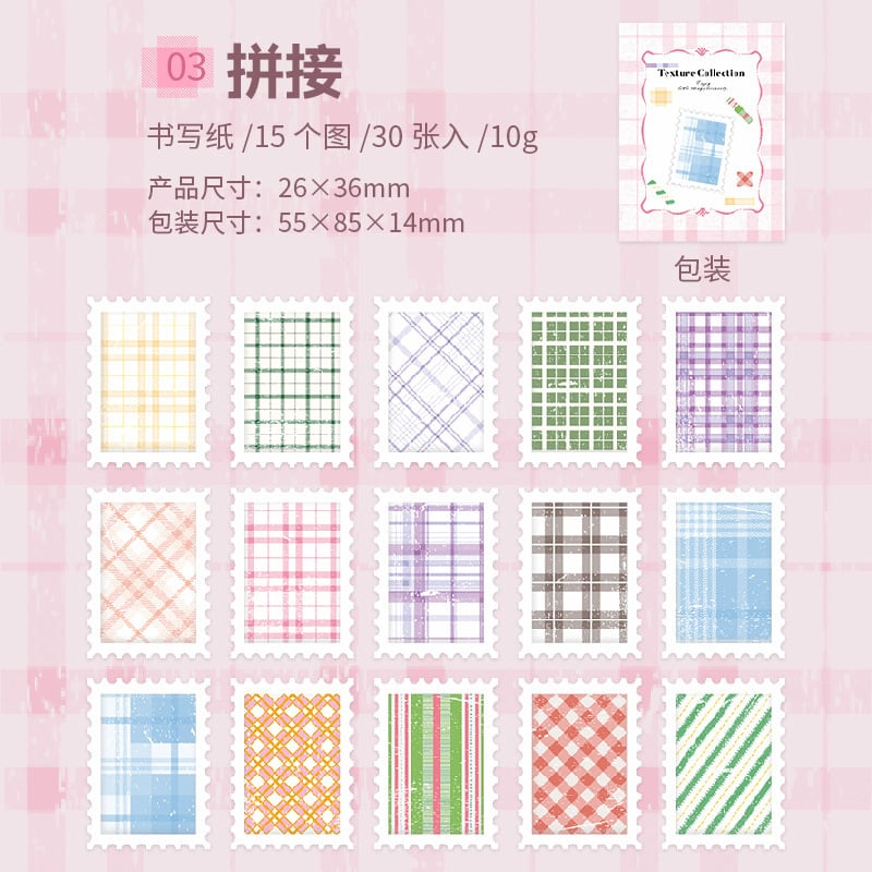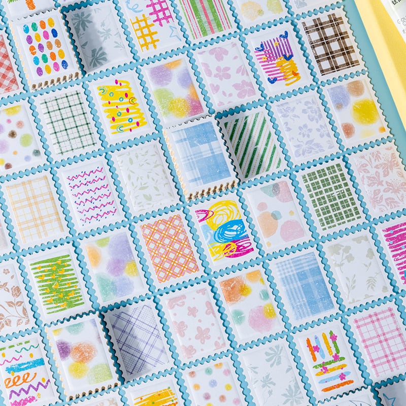 手帳デコ/文具/日記デコ/文具沼/紙もの/かわいい/海外文具/コラージュ/ジャーナル/ラッピング/パステル/淡色/海外シール/デコ素材/シール/フレークシール/ステッカー/切手/チェック柄