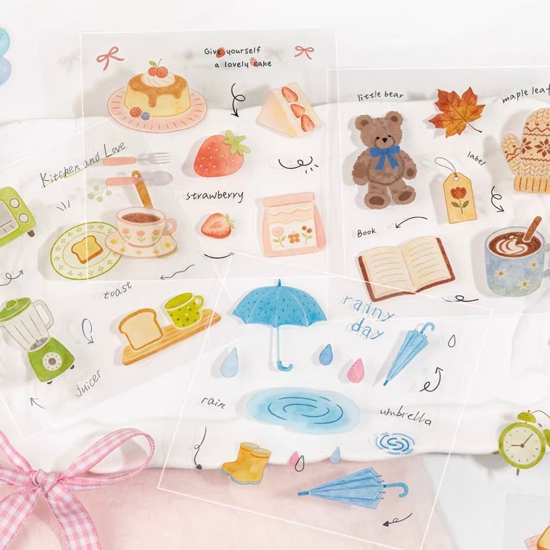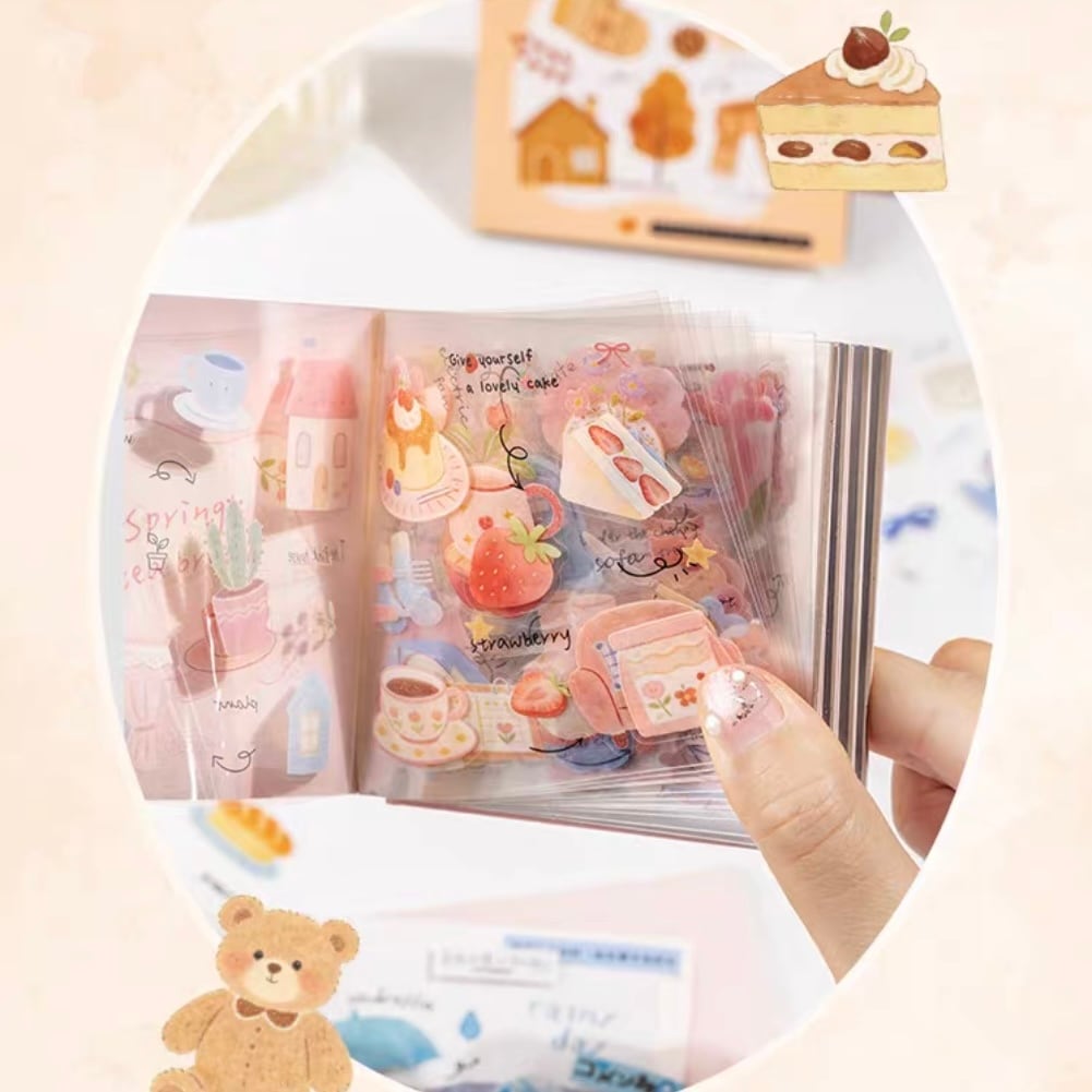 手帳デコ/文具/日記デコ/文具沼/紙もの/かわいい/海外文具/コラージュ/ジャーナル/ラッピング/パステル/淡色/海外シール/デコ素材/シール/PETシール/シールブック/クリアシール/スイーツ/カフェ