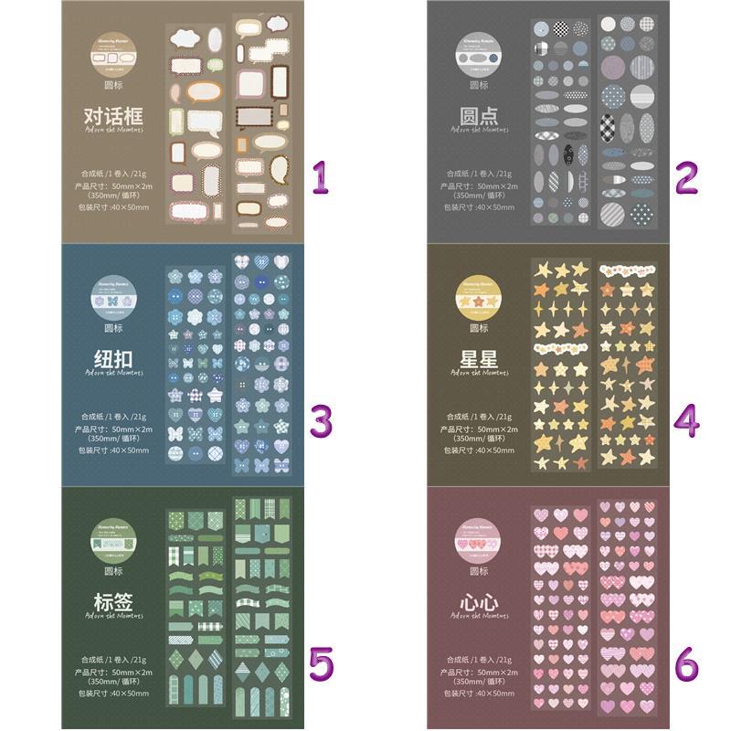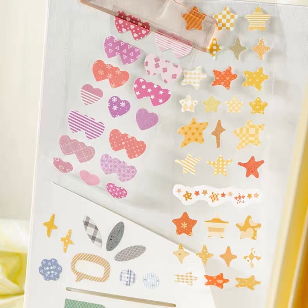 手帳デコ/文具/日記デコ/文具沼/紙もの/かわいい/海外文具/コラージュ/ジャーナル/ラッピング/パステル/淡色/海外シール/デコ素材/シール/ロールステッカー/ステッカー/ハート/ふきだし/ラベル/ボタン/星