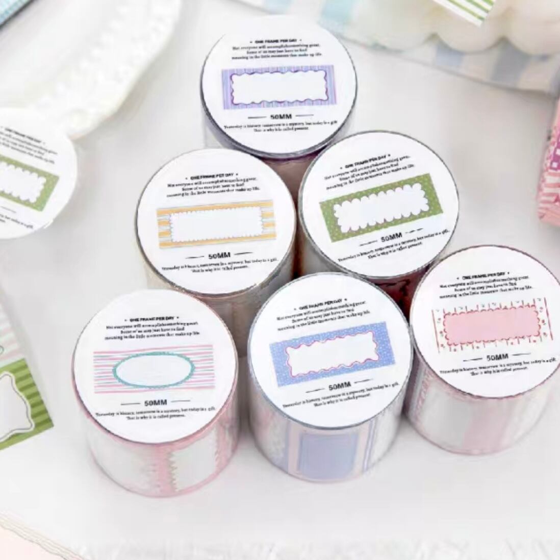 手帳デコ/文具/日記デコ/文具沼/紙もの/かわいい/海外文具/コラージュ/ジャーナル/ラッピング/パステル/淡色/海外シール/デコ素材/ロールステッカー/シール/ステッカー/ラベル/フレーム/メモ/パターン柄