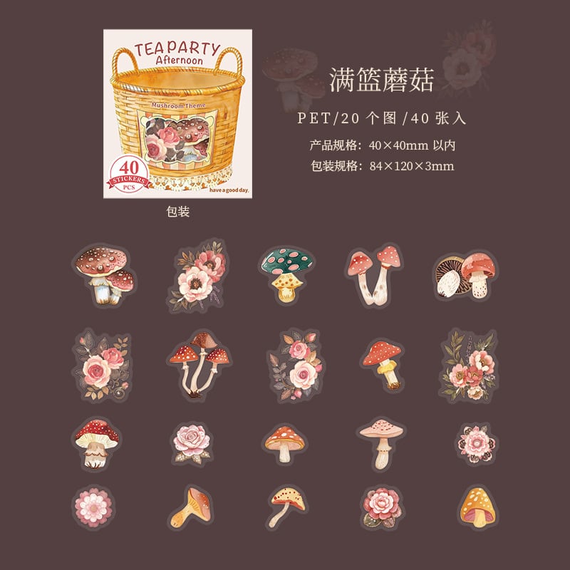 手帳デコ/文具/日記デコ/文具沼/紙もの/かわいい/海外文具/コラージュ/ジャーナル/ラッピング/パステル/淡色/海外シール/デコ素材/ロールステッカー/シール/ステッカー/スイーツ/フォレスト/PETシール/クリアシール/きのこ/アンティーク/ガーデン/フルーツ/カフェ/パン/スイーツ